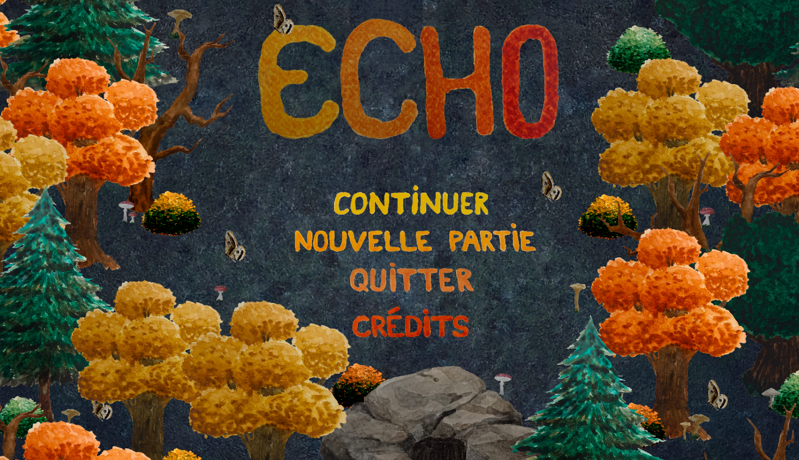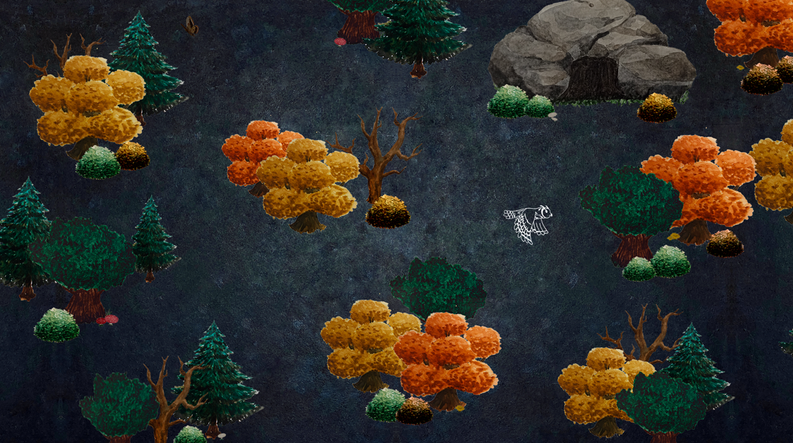 Jeu vidéo réalisé à trois sur le thème de la nuit blanche. Il a été fait à l'aquarelle pour les assets, le fond à la peinture acrylique et la chauve-souris et les hiboux au feutre fin noir puis modifié sur Photoshop.